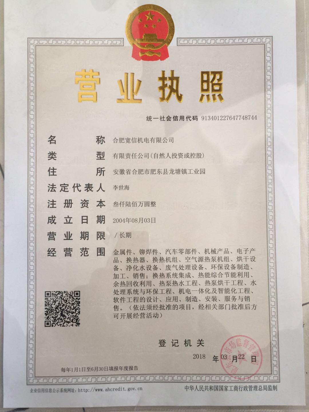 合肥寬信機(jī)電有限公司成立于2002年,是從事熱交換器、余熱回收、煙氣廢氣熱回收與凈化處理、熱泵機(jī)組及其應(yīng)用、汽車零部件研發(fā)、制造、銷售與工程服務(wù)為一體的高新技術(shù)企業(yè)。公司位于合肥上海產(chǎn)業(yè)園,占地60畝,擁有40000多平方米標(biāo)準(zhǔn)化工業(yè)廠房,10000多平方米研發(fā)、營(yíng)銷、服務(wù)綜合樓,各類生產(chǎn)、檢測(cè)、實(shí)驗(yàn)設(shè)備300多臺(tái)套,科研技術(shù)開(kāi)發(fā)團(tuán)隊(duì)50多人,自主知識(shí)產(chǎn)權(quán)及國(guó)家專利和研究成果60多項(xiàng),在熱交換器、余熱回收、熱泵機(jī)組應(yīng)用、廢氣凈化處理方面都具有較強(qiáng)的實(shí)力。